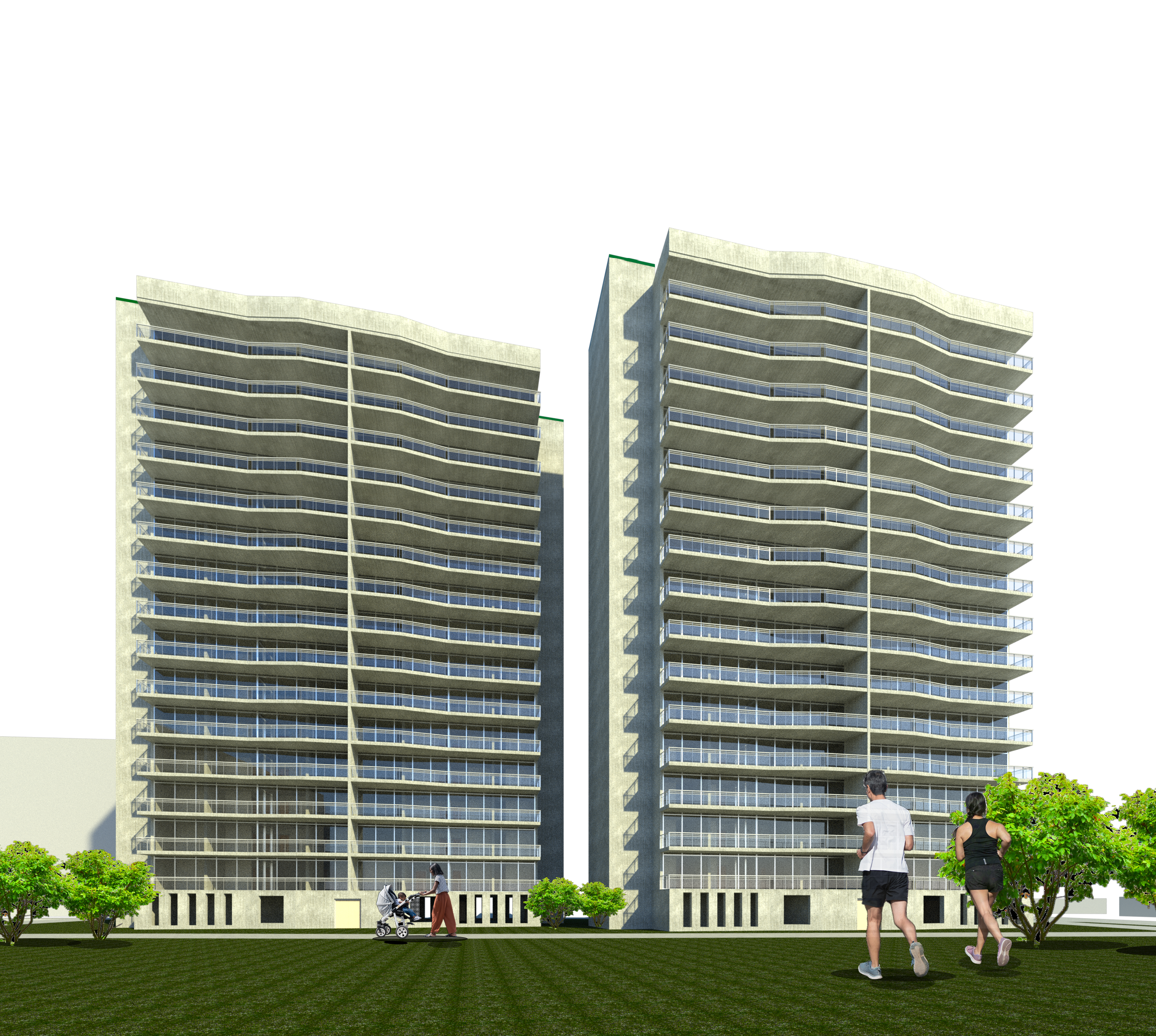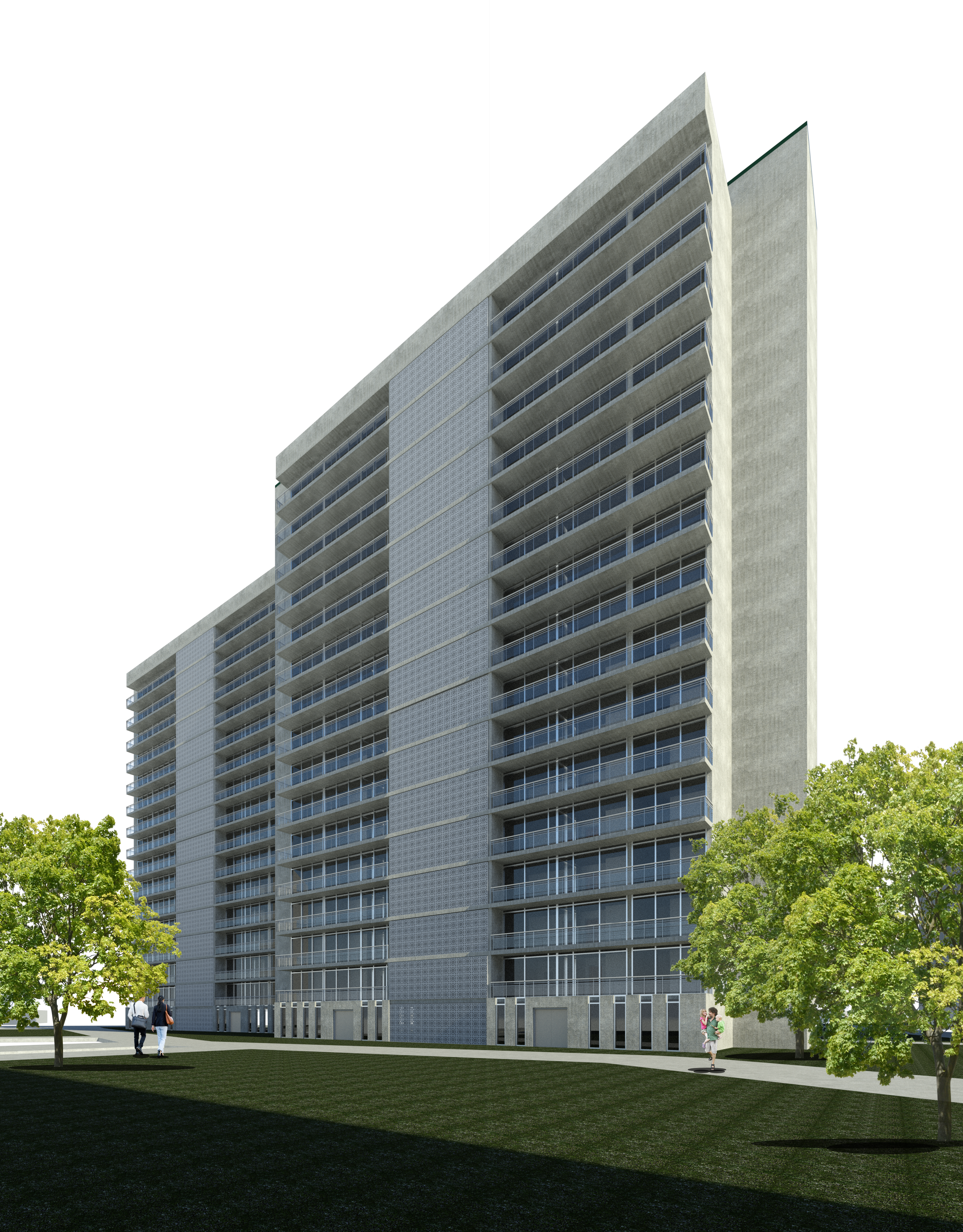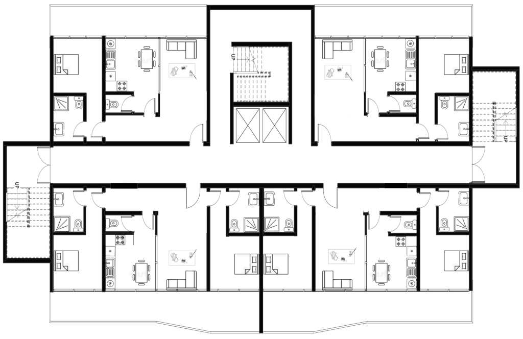 The building is composed of 18 stories, with 1 or 2 bedroom apartments. Two sets of emergency exist stairs with reinforced concrete walls were incorporated to give residents and visitors a safe-haven in case of emergency events.