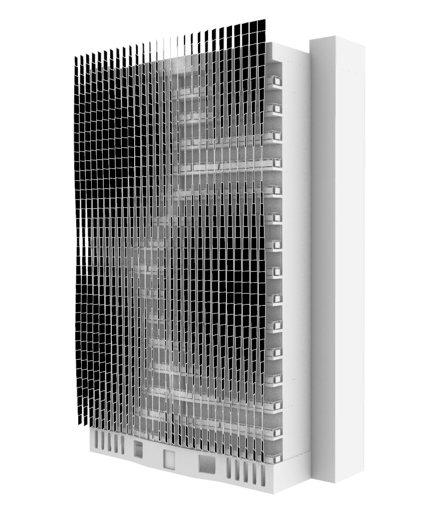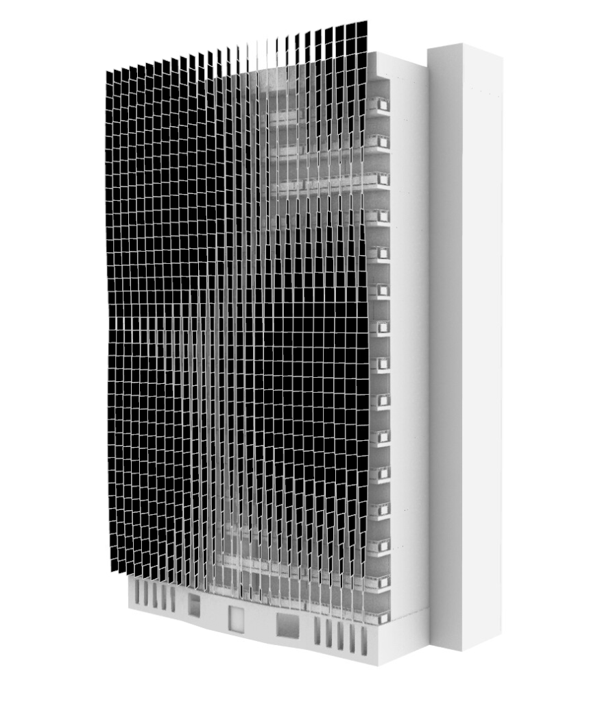 A second idea that was studied during this design was a kinetic facade, that can be applied to the entirety of the building, or in each individual unit having each resident control the opening of the blinds.