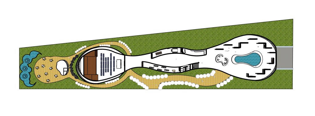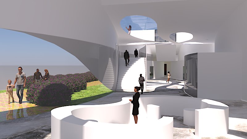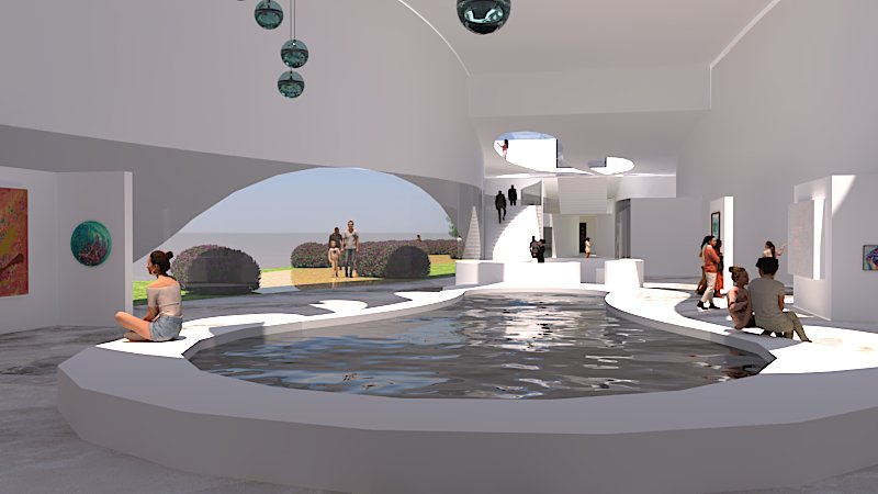 Located by the Emma Hotel, in the heart of San Antonio lays Flumen. An art museum with a very organic shape, derived from the shape of water droplets in movement.